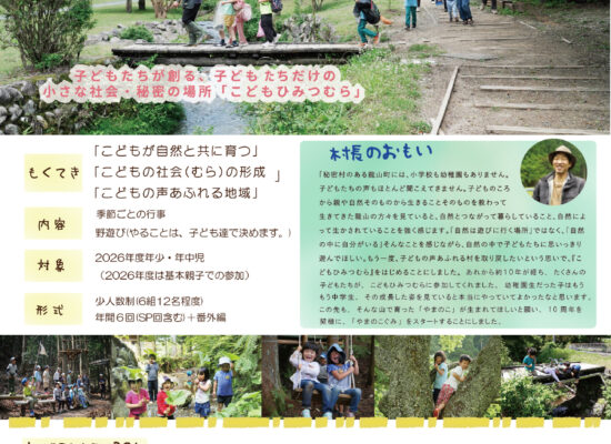 ★こどもひみつむら「やまのこぐみ」2026新規募集開始!(2026年度年少・年中児向け)