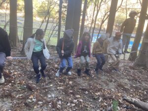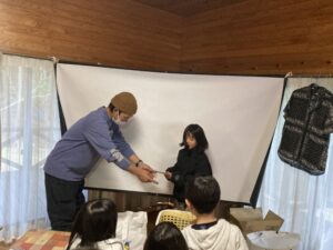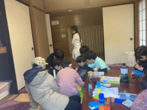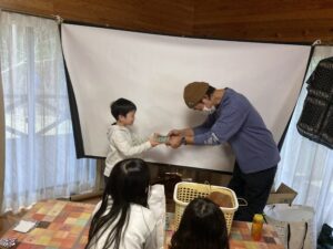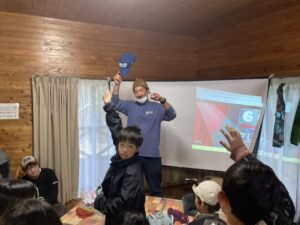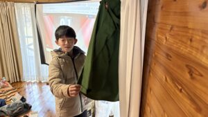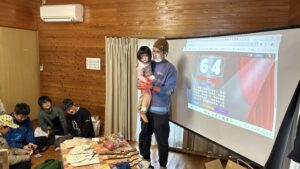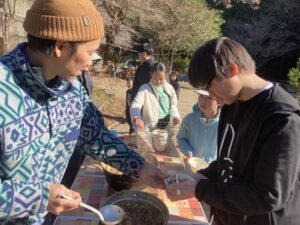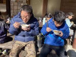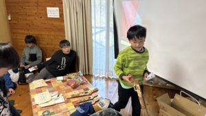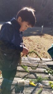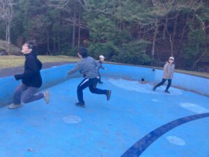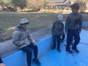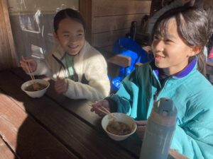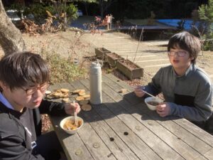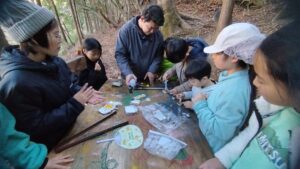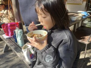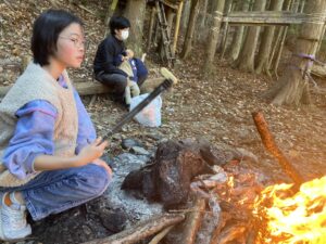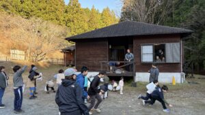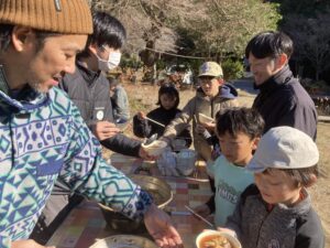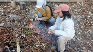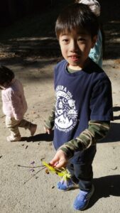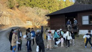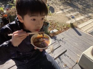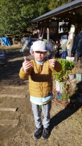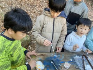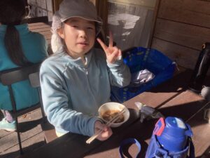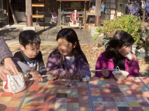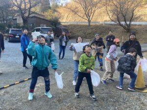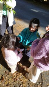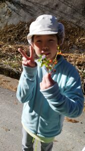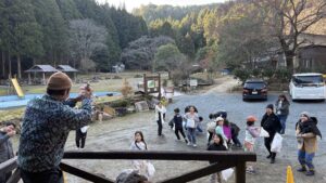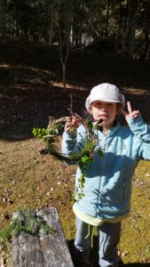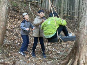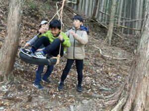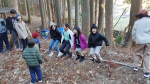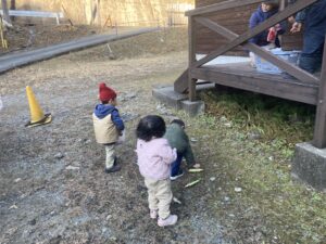 今日は寒いので早速、山鬼ごっこ。あっという間に山の中に消えていきました。