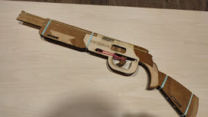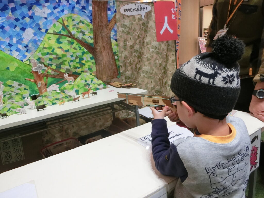 木製のゴム銃で標的を撃ちます。見事目標をクリアしたら素敵なプレゼントが!