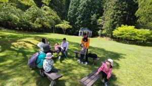 大きな桜の木の下でまずは、秘密村の説明と自己紹介。