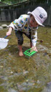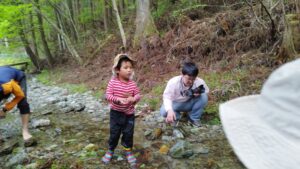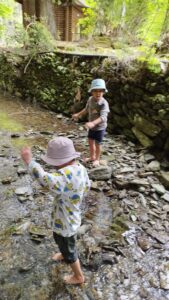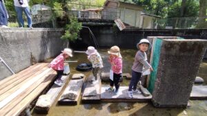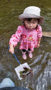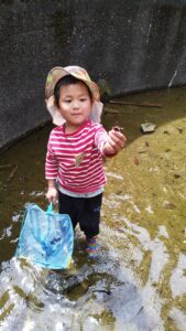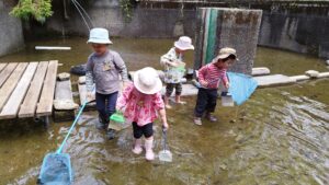 みんなは、午前中で遊び足りなかった生き物池へ。
