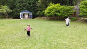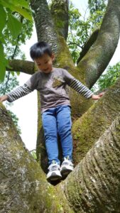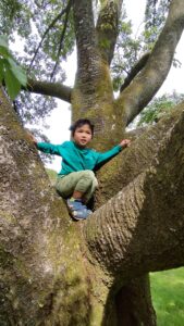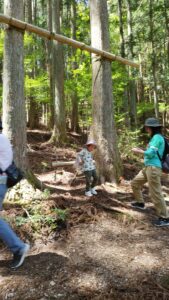 山の中の大きな木のブランコで遊んで、さらに奥へ。。